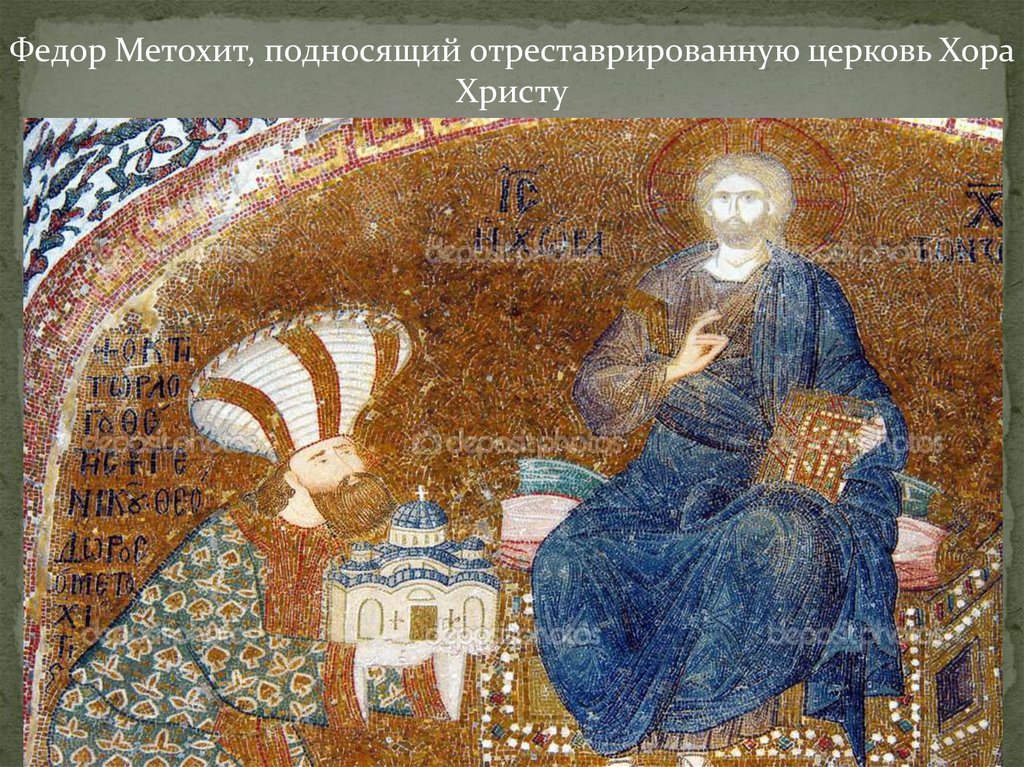 Федор Метохит, подносящий отреставрированную церковь ХораХристу