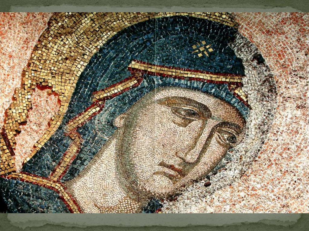 54. Мозаичное изображение Богородицы с Младенцем Иисусом Христом в апсиде, 9 в.