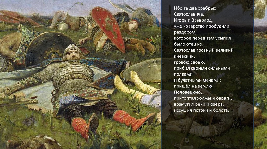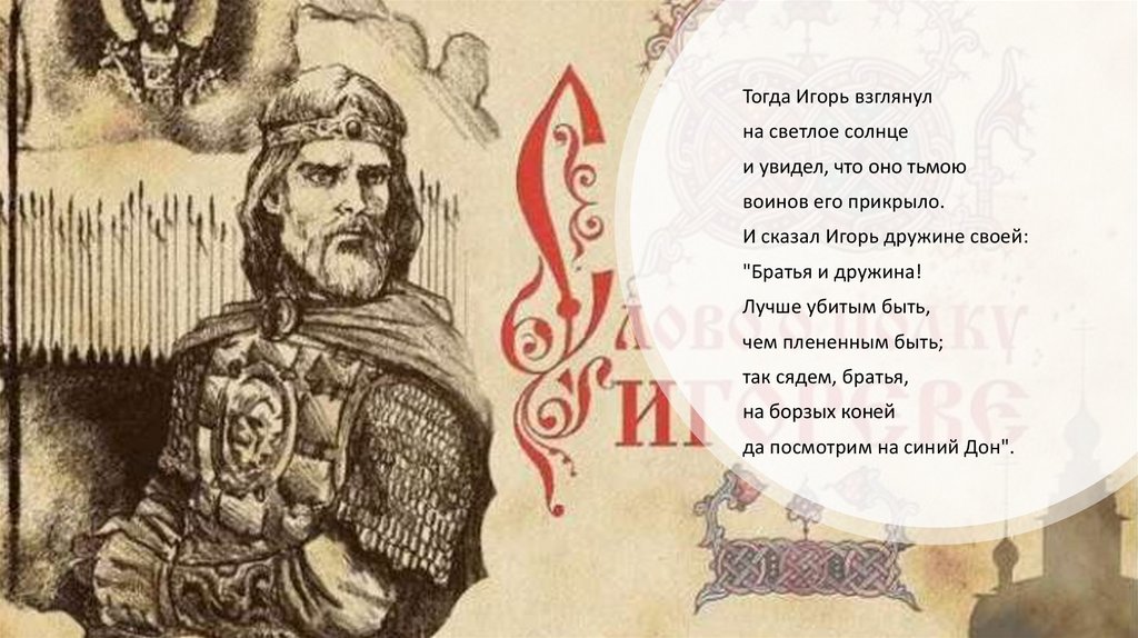 Солнце светится на небе, а Игорь князь в Русской земле.Девицы поют на Дунае, вьются голоса их через море до Киева.
