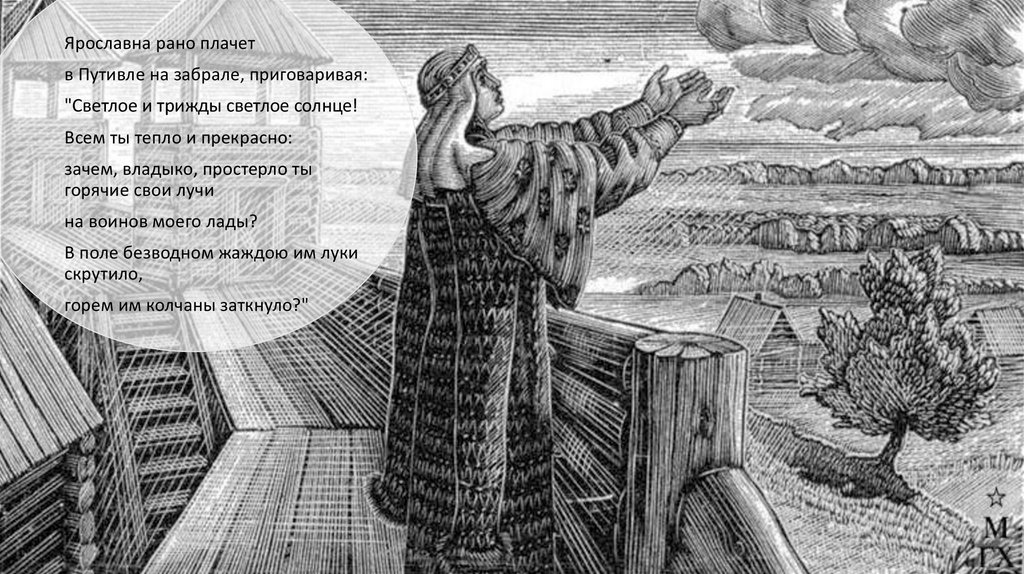 Ярославна рано плачетв Путивле на забрале, приговаривая: