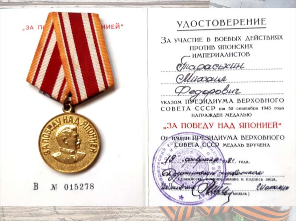 медалью «За победу над Японией» и орденом