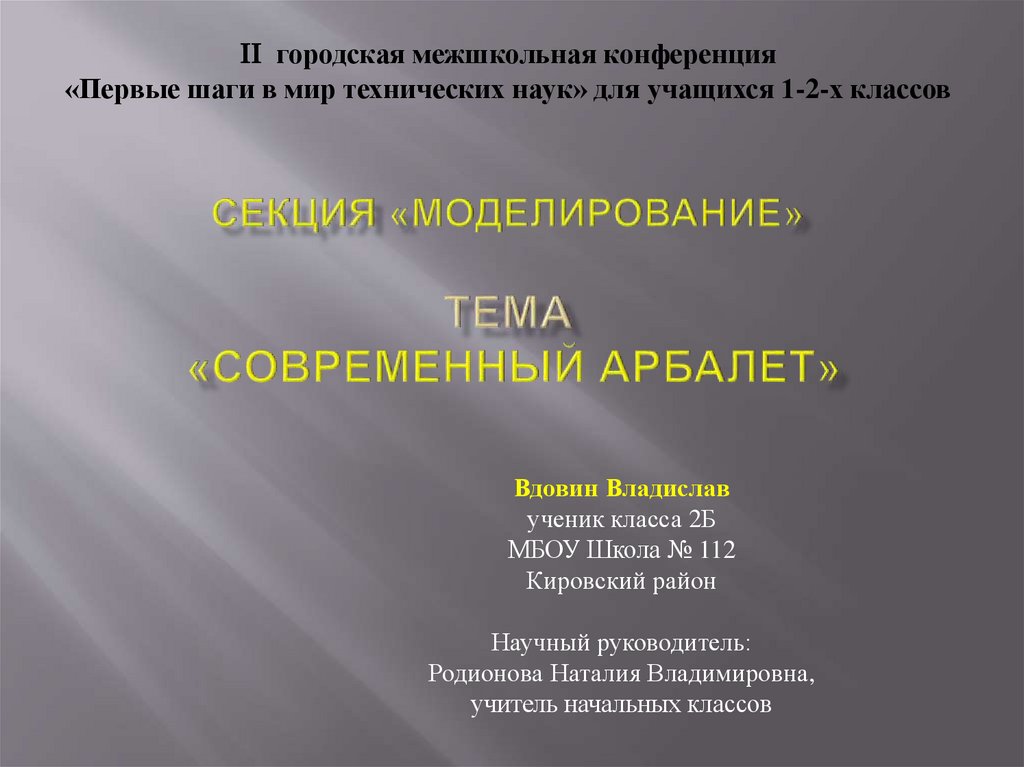 1. Секция «Моделирование» Тема «Современный арбалет»