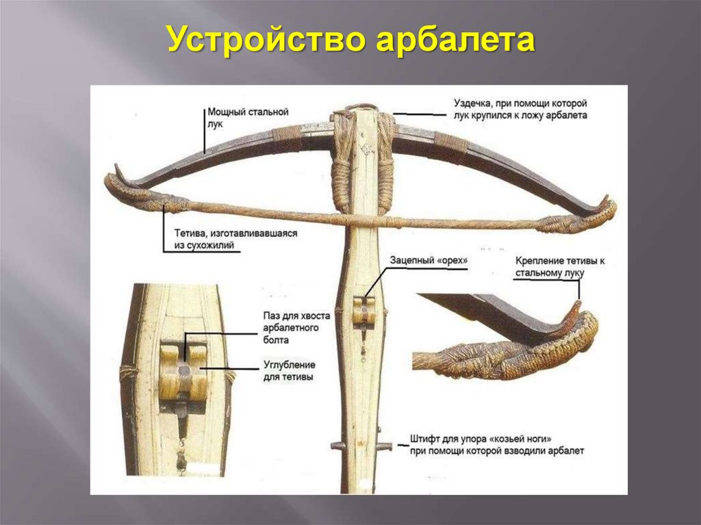 - изучить строение арбалет;