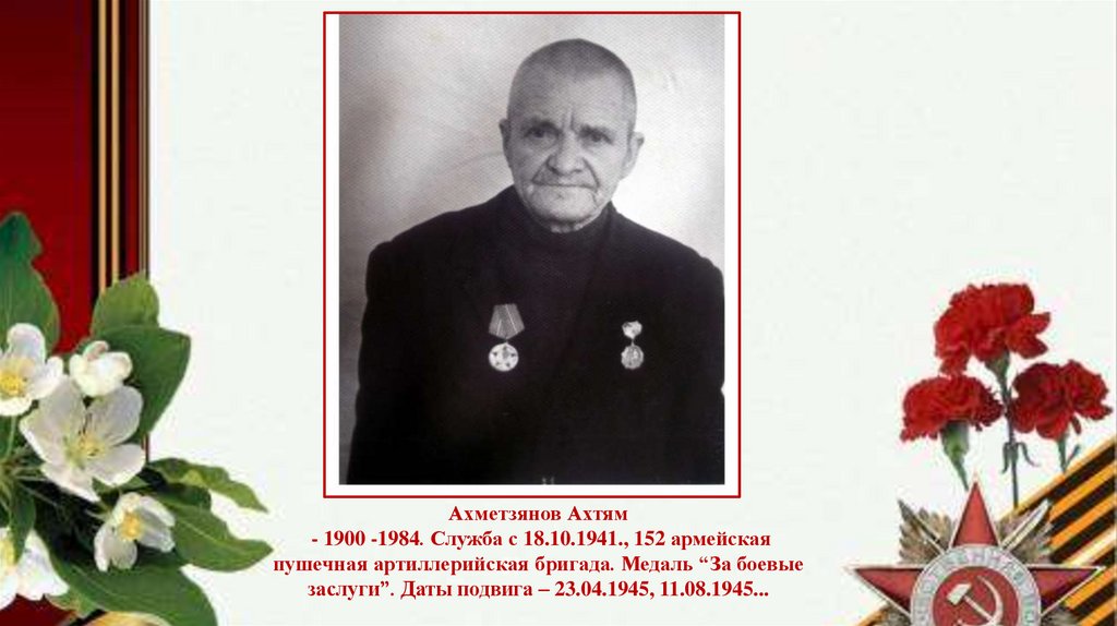 Ахметзянов Ахтям- 1900 -1984. Служба с 18.10.1941., 152 армейская