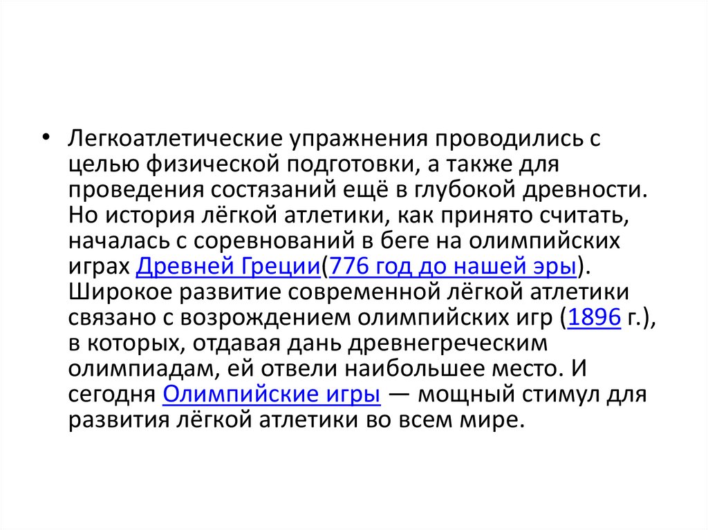 • Легкоатлетические упражнения проводились сцелью физической подготовки, а также для