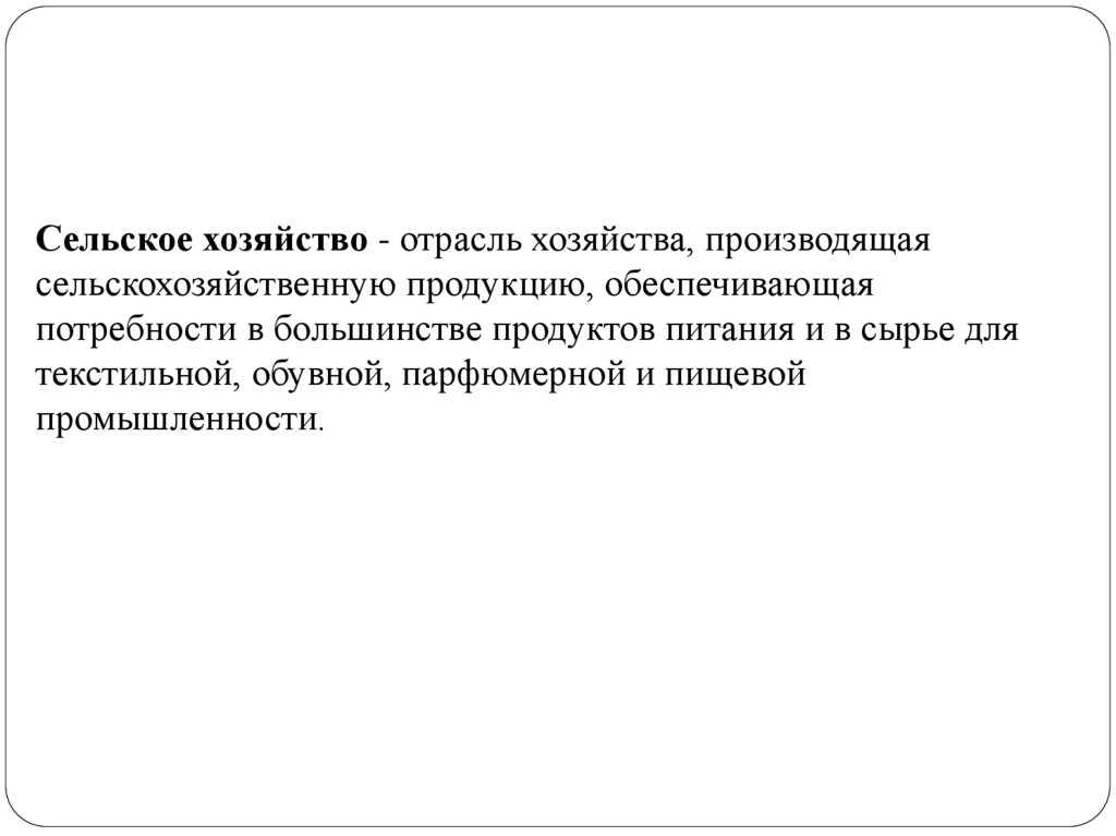 Сельское хозяйство - отрасль хозяйства, производящаясельскохозяйственную продукцию, обеспечивающая