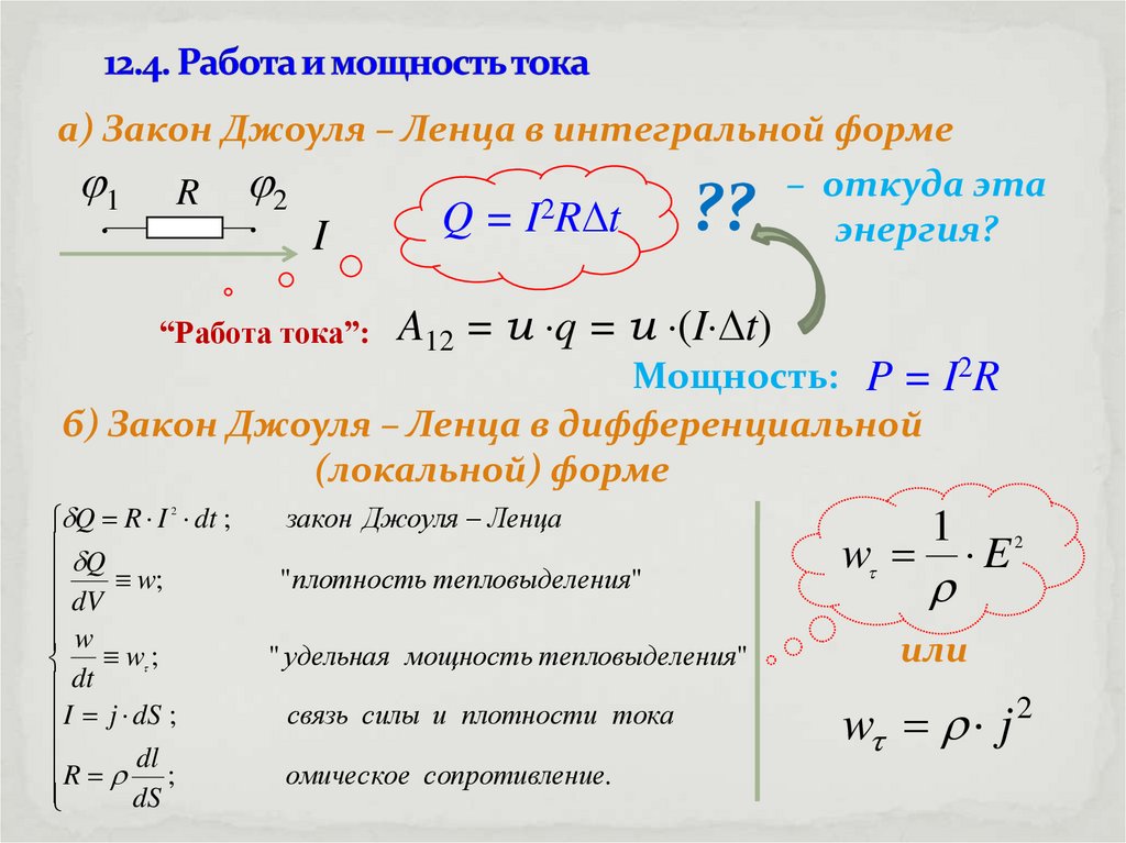 a) Закон Джоуля – Ленца в интегральной форме– откуда эта
