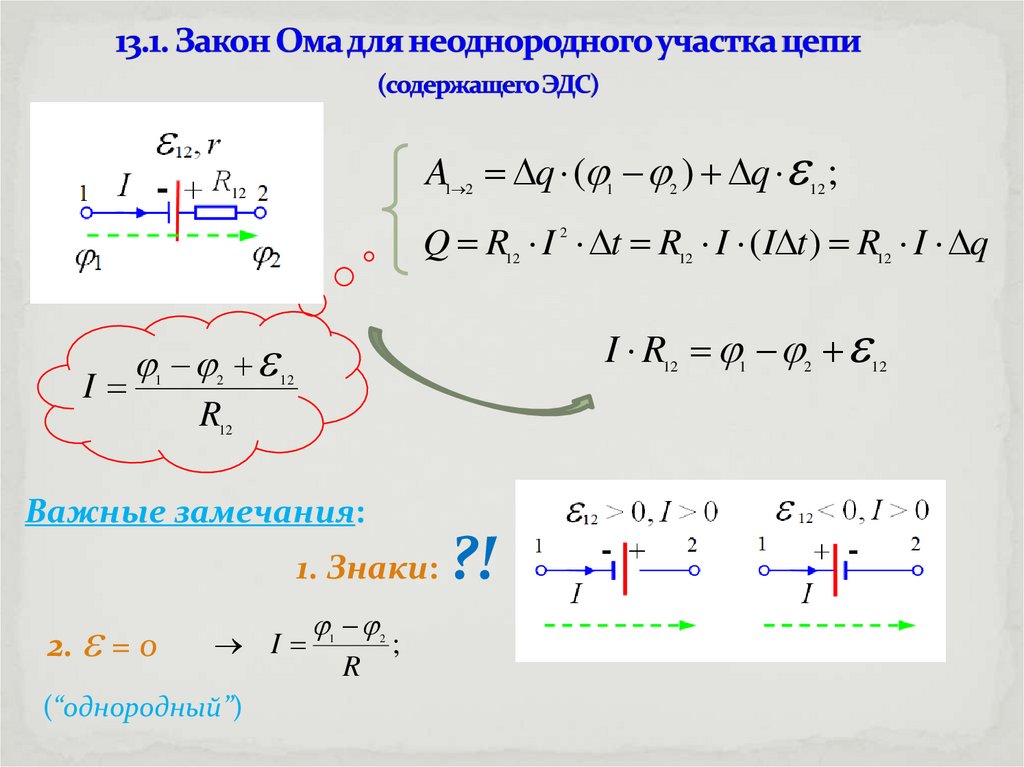 ( 1 2 ) ; закон Ома
