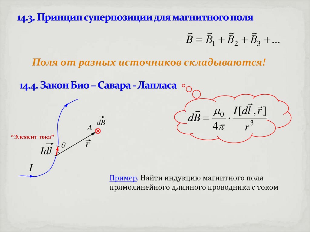 Магнитное поле прямолинейного проводника