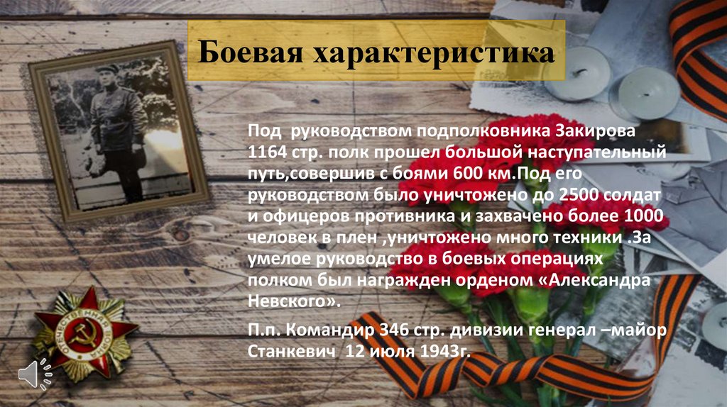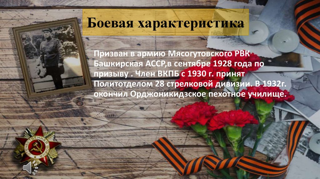 Боевая характеристикаПризван в армию Мясогутовского РВК