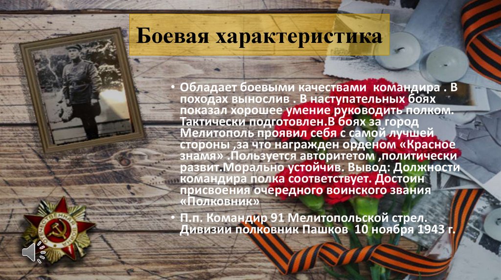 Дивизии полковник Пашков 10 ноября 1943 г.