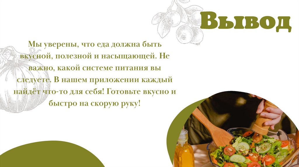 Мы уверены, что еда должна бытьвкусной, полезной и насыщающей. Не