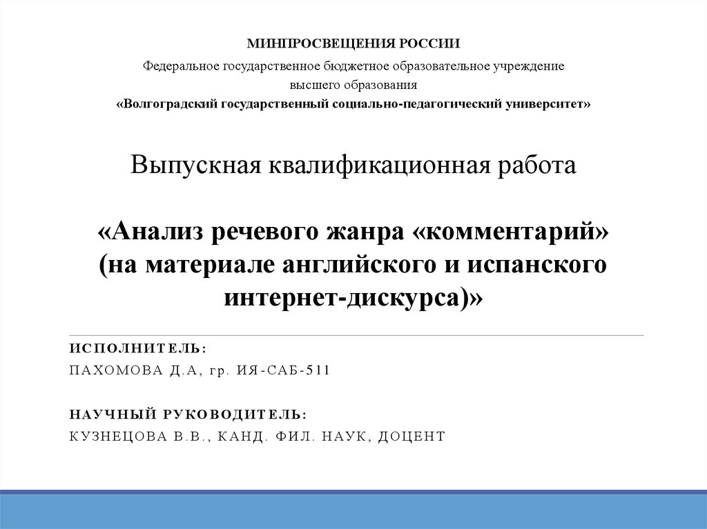 «Анализ речевого жанра «комментарий»
