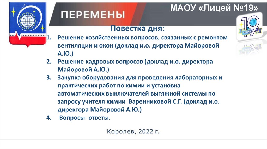 1. Решение хозяйственных вопросов, связанных с ремонтом