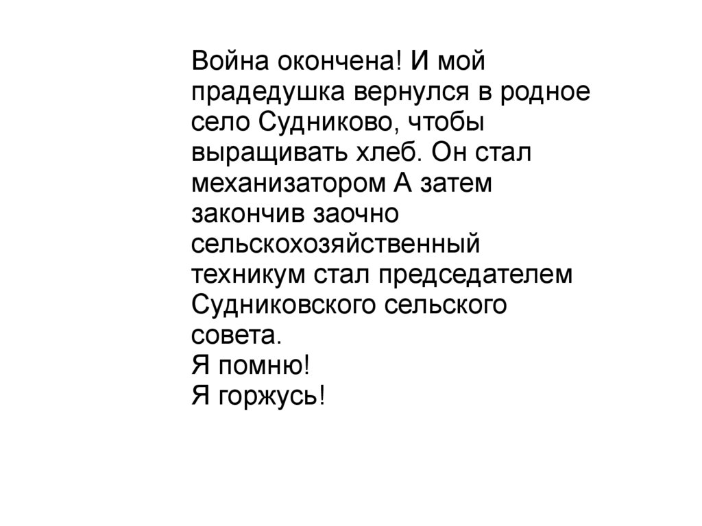 Война окончена! И мойпрадедушка вернулся в родное