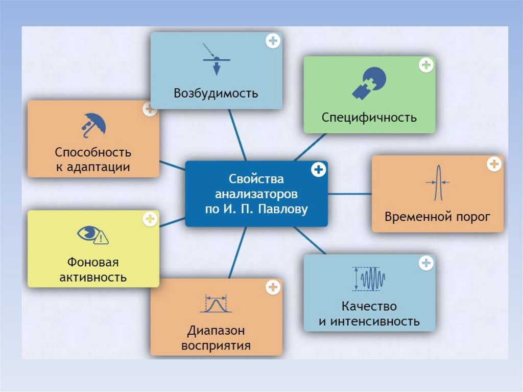 Каждый анализатор состоит из воспринимающих рецепторных нервов,
