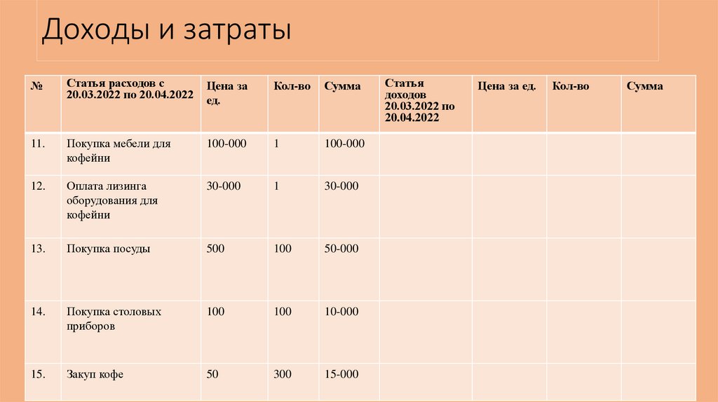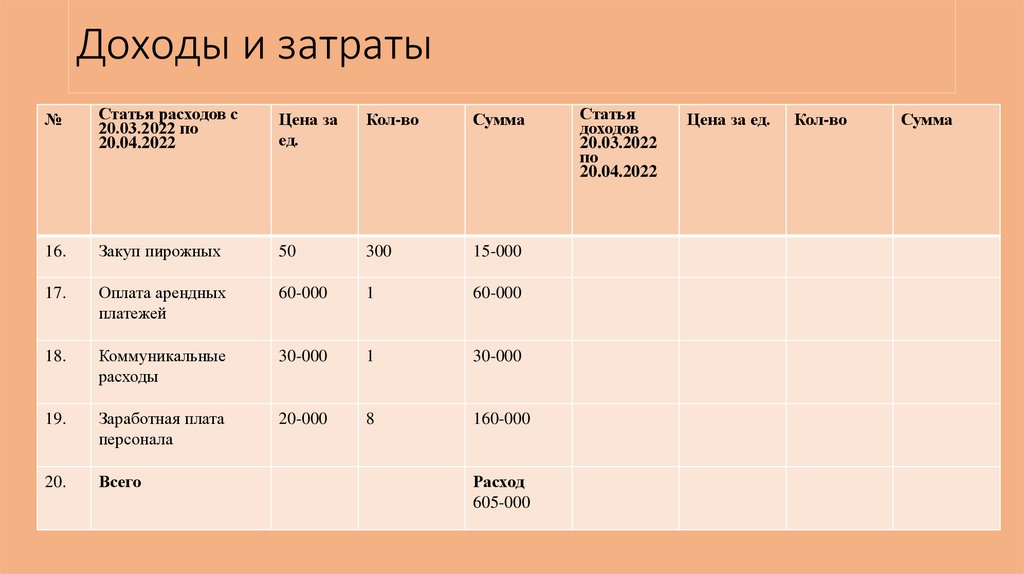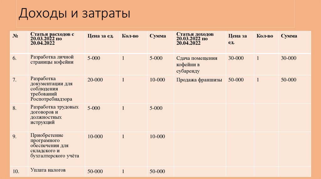 Доходы и затраты:№