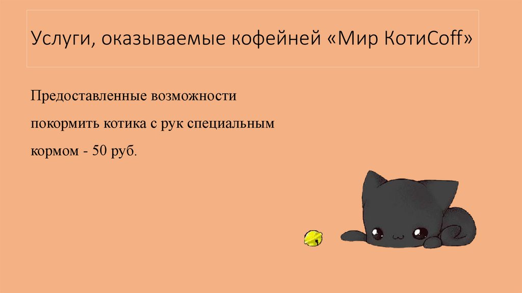 Услуги, оказываемые кофейней «Мир КотиCoff»Предоставленные возможности