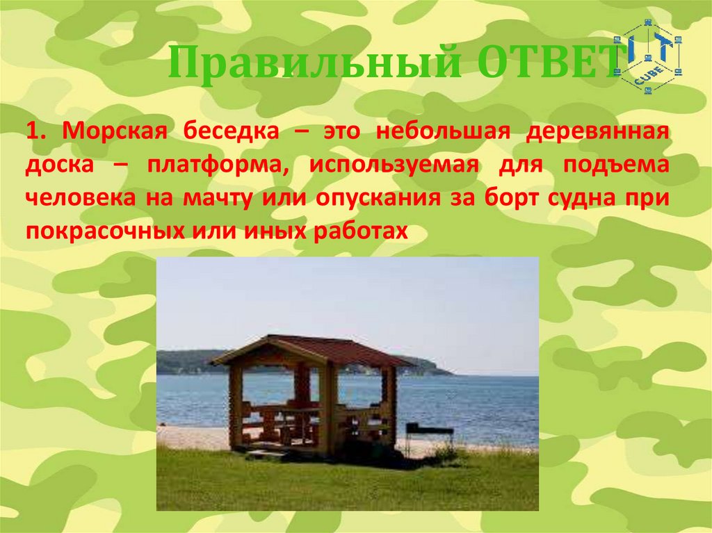 Правильный ОТВЕТ1. Морская беседка – это небольшая деревянная