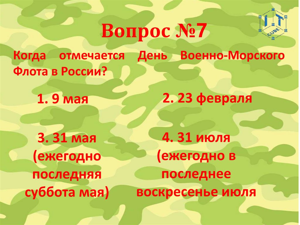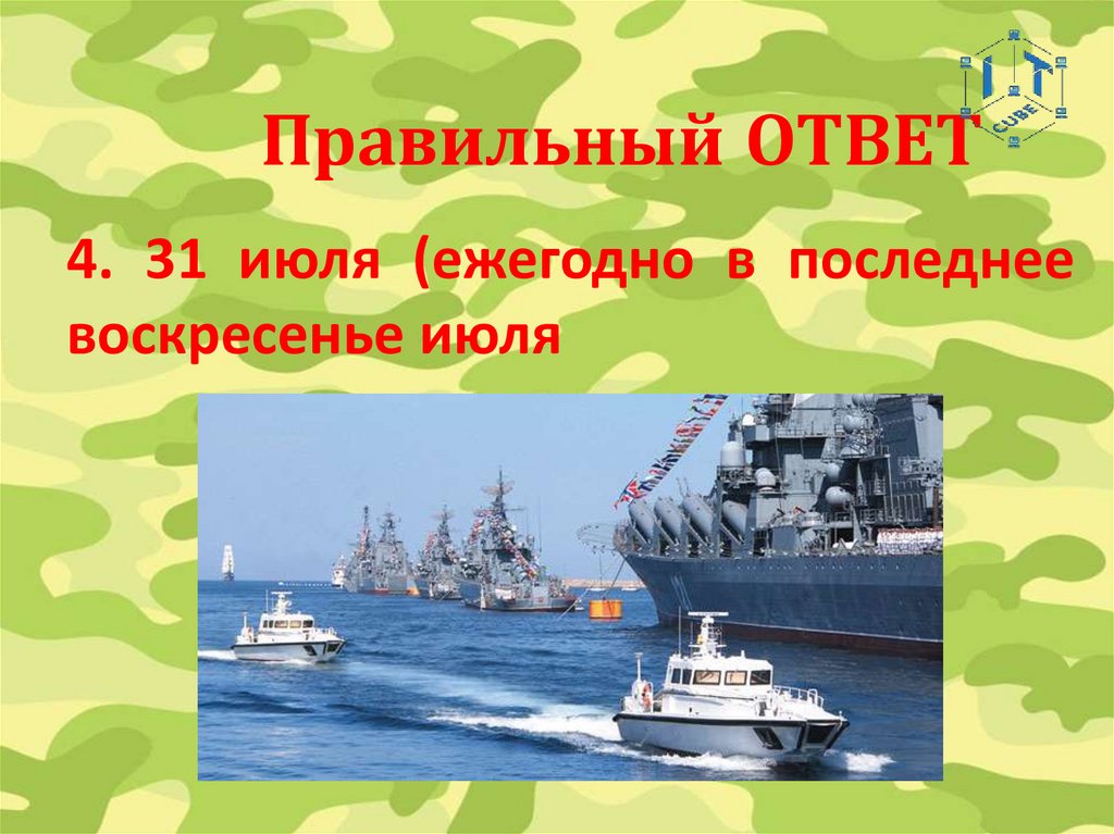 Правильный ОТВЕТ4. 31 июля (ежегодно в последнее