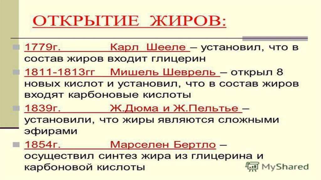 Жиры. История открытия жиров