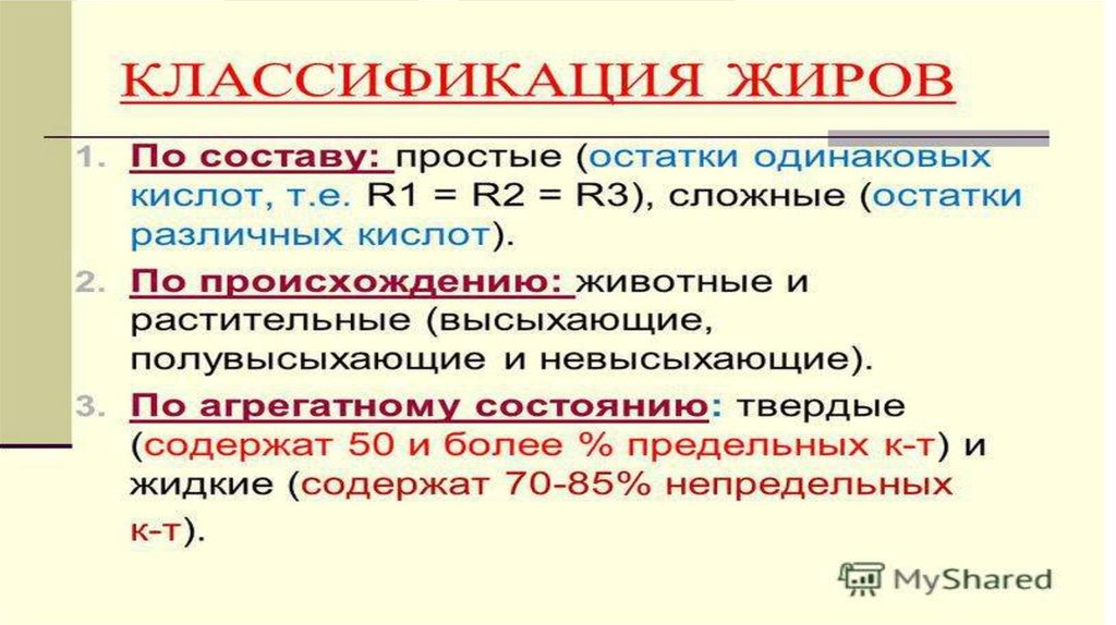 Жиры. Классификация жиров