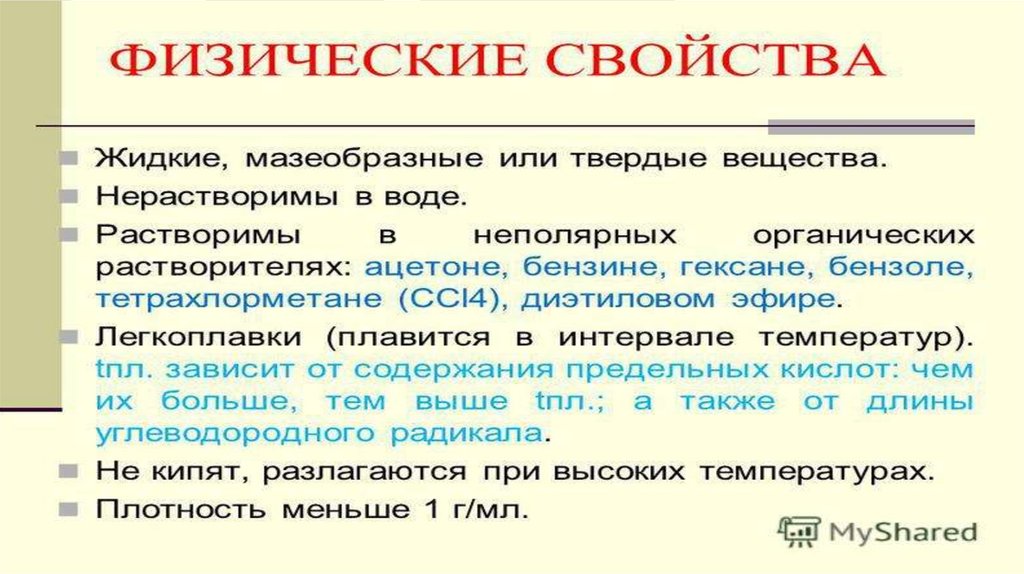 Жиры. Состав жиров