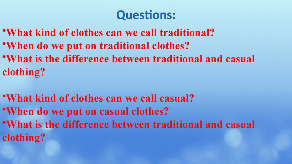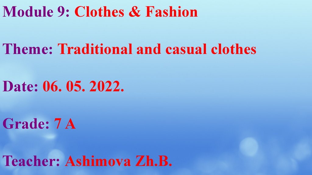 Module 9: Clothes & Fashion. Traditional and casual clothes