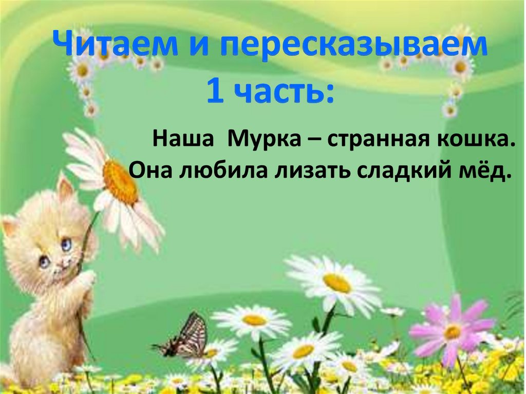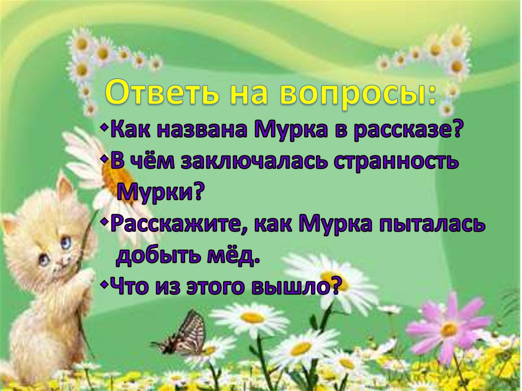 Наша Мурка – странная кошка.Она любила лизать сладкий мёд.
