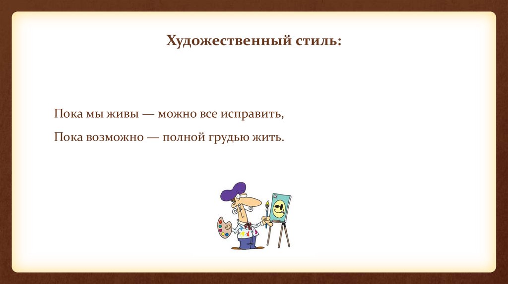 Художественный стиль:Пока мы живы — можно все исправить,