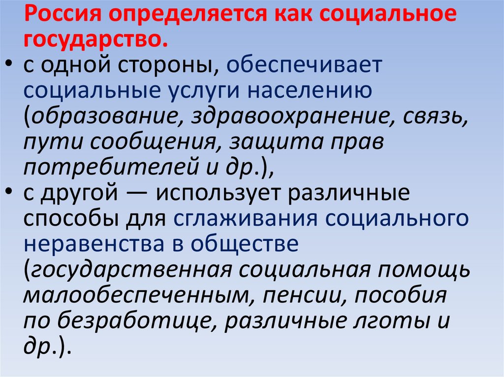 Россия определяется как социальноегосударство.