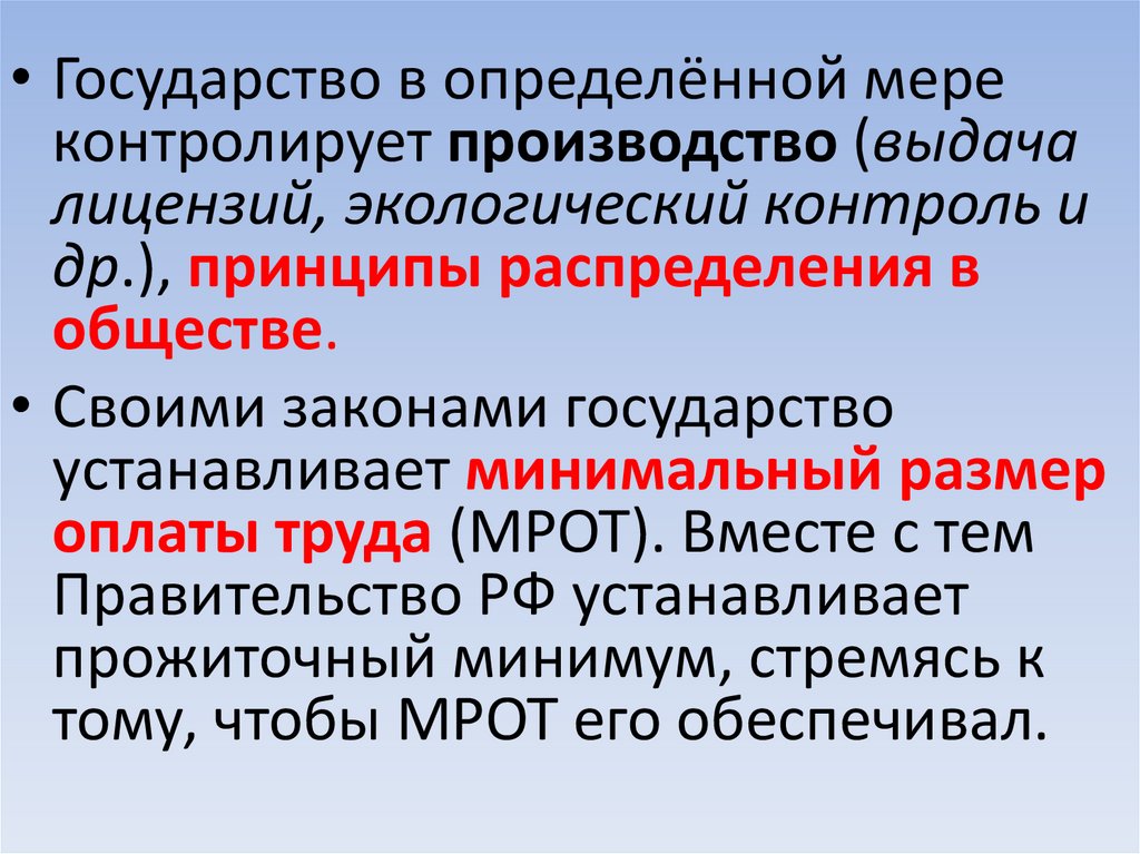 • Государство в определённой мереконтролирует производство (выдача