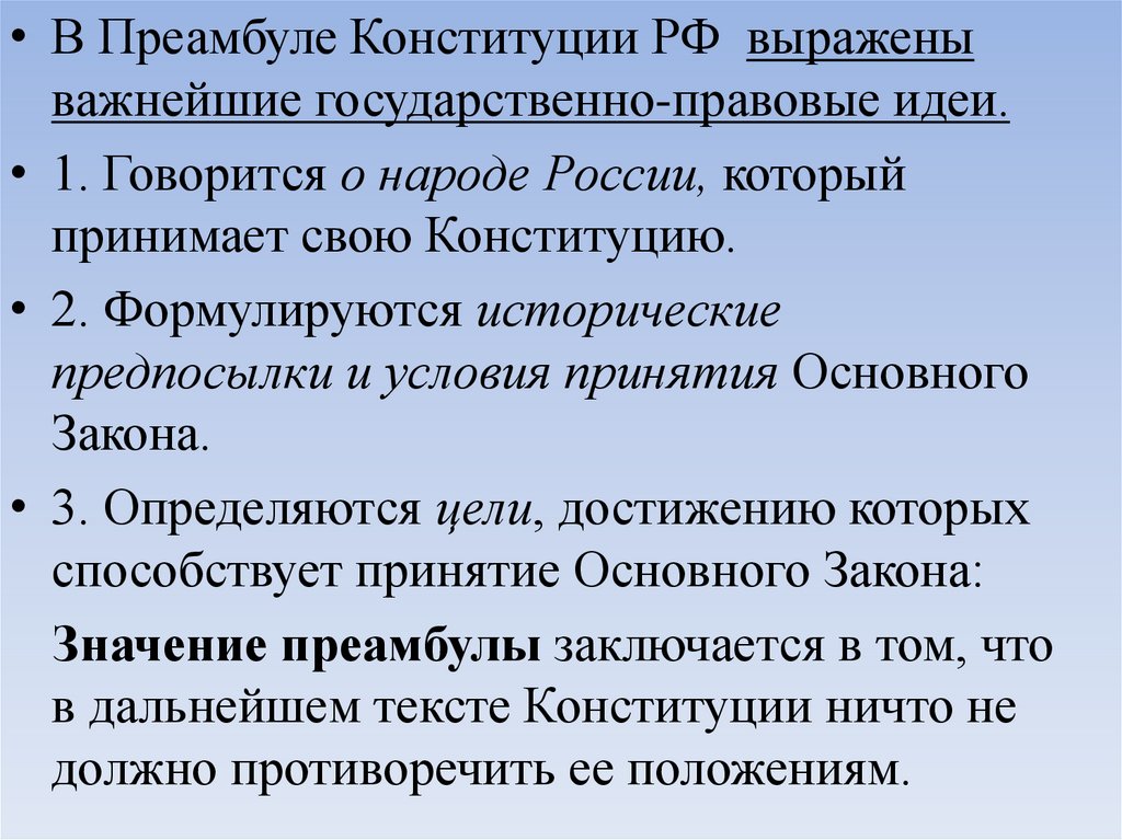 Значение преамбулы заключается в том, что