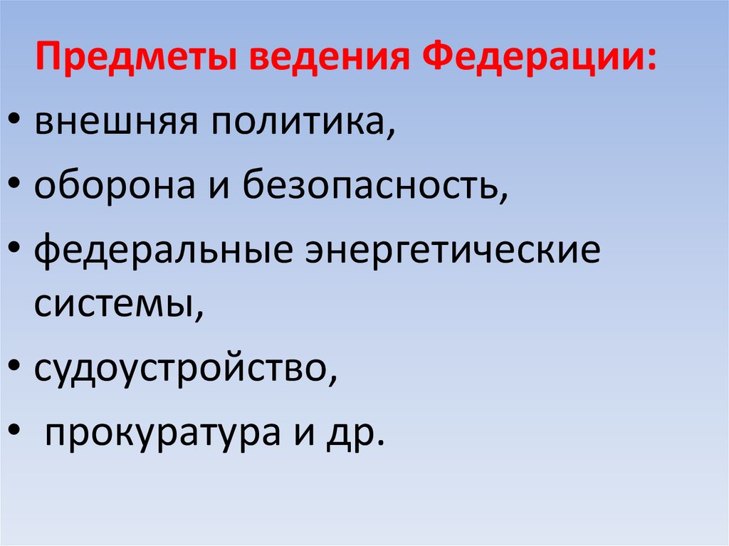 Предметы ведения Федерации:• внешняя политика,
