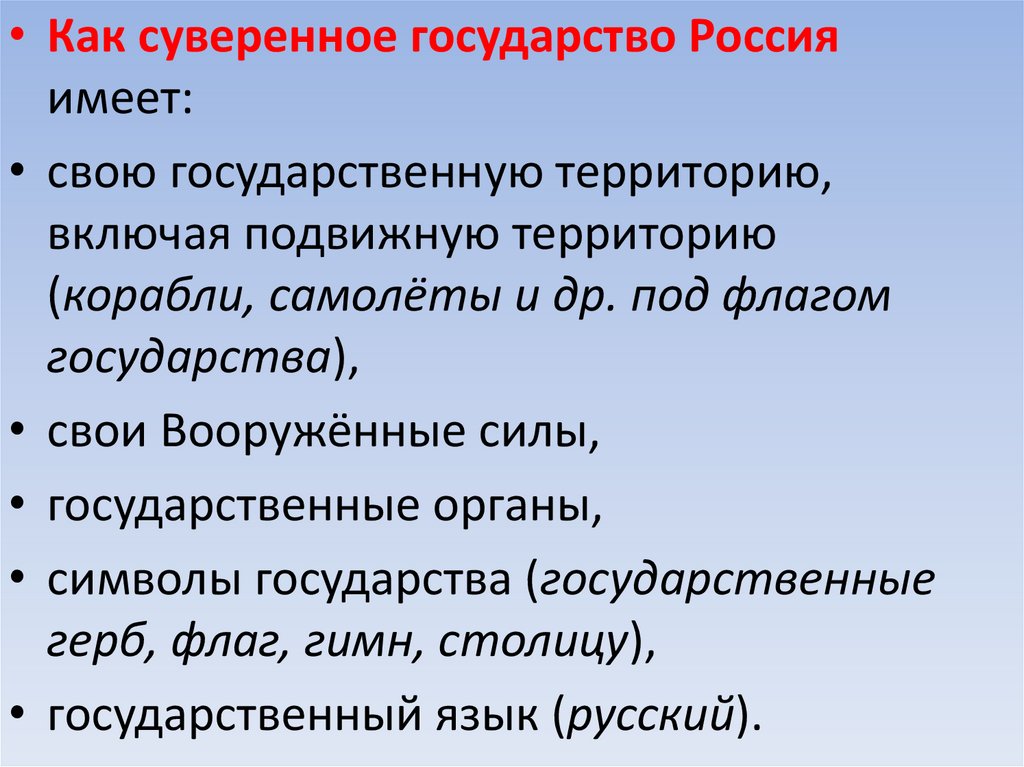 • Как суверенное государство Россияимеет: