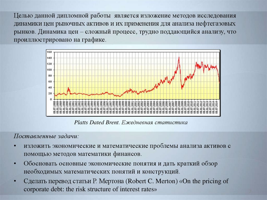 Целью данной дипломной работы является изложение методов исследованиядинамики цен рыночных активов и их применения для анализа нефтегазовых