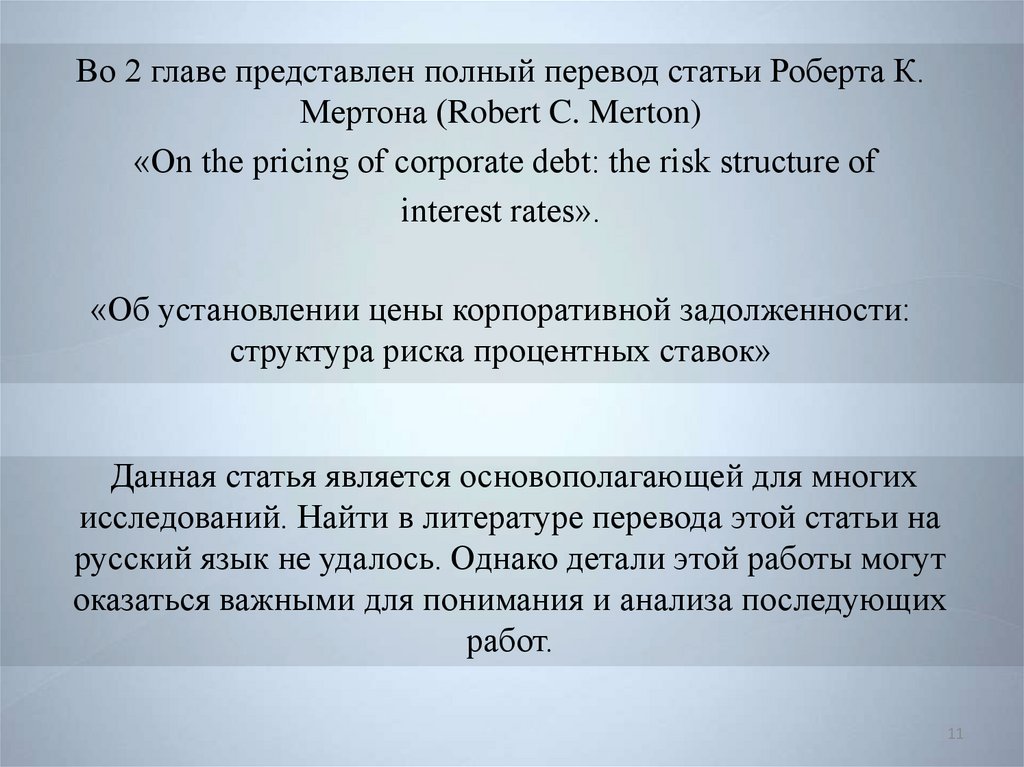 Во 2 главе представлен полный перевод статьи Роберта К.Мертона (Robert C. Merton)