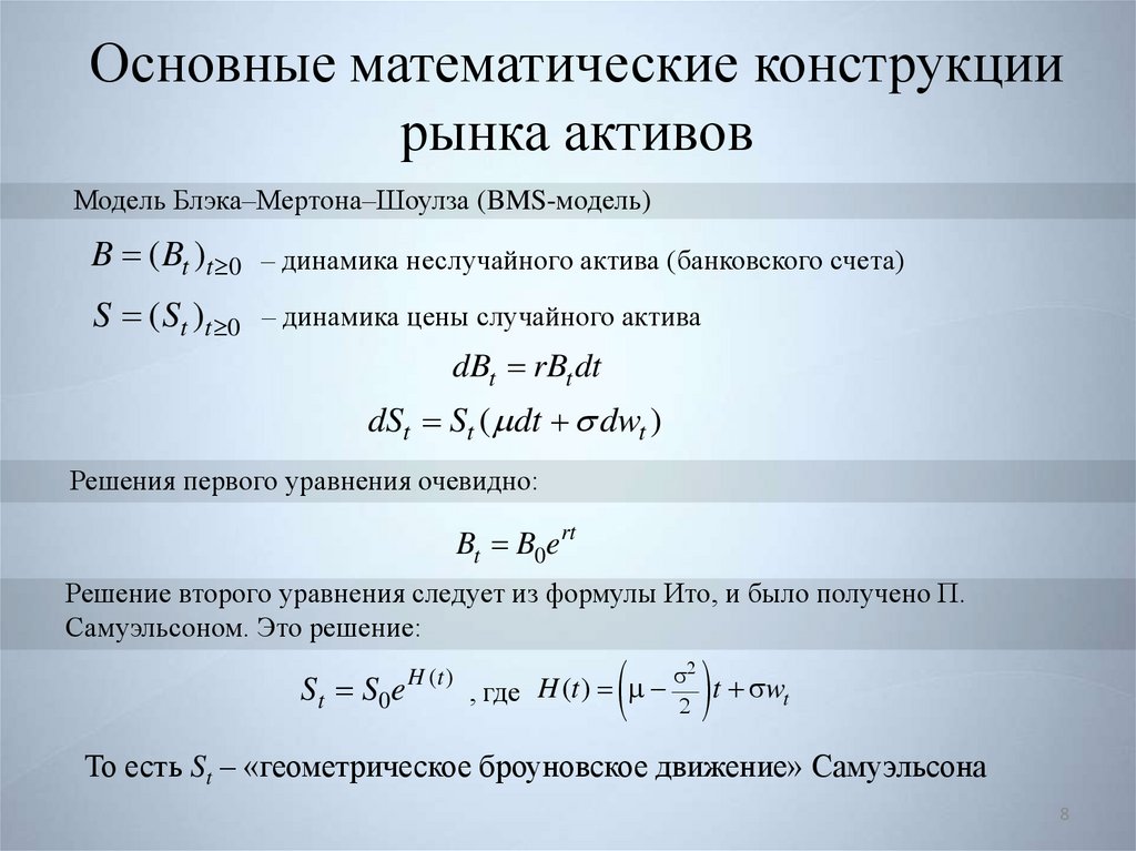 Основные математические конструкциирынка активов