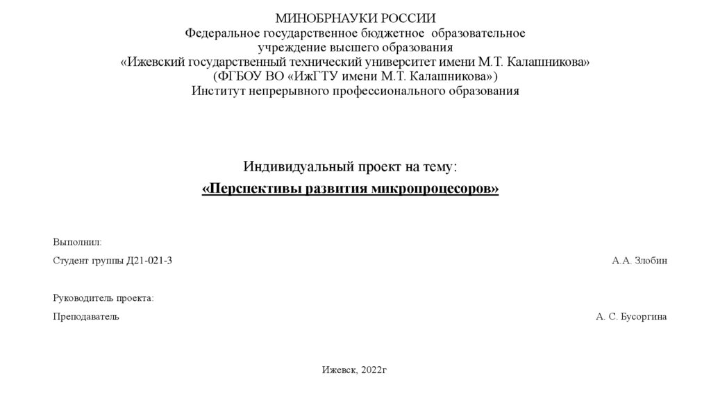 (ФГБОУ ВО «ИжГТУ имени М.Т. Калашникова»)