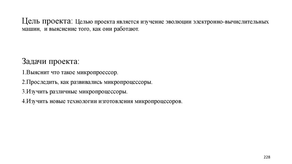 Цель проекта: Целью проекта является изучение эволюции электронно-вычислительныхмашин, и выяснение того, как они работают.