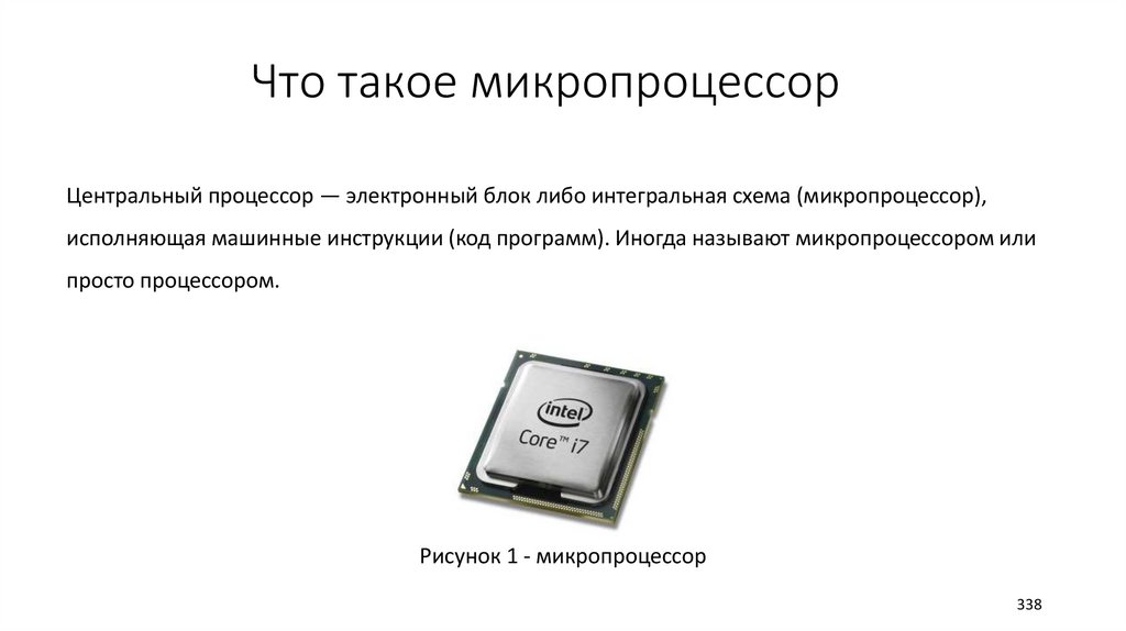 Что такое микропроцессорЦентральный процессор — электронный блок либо интегральная схема (микропроцессор),
