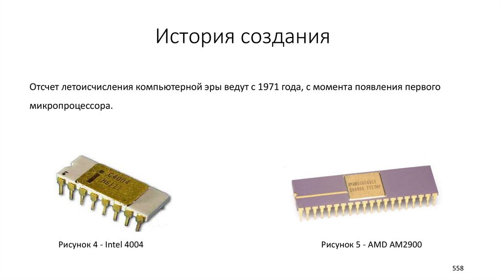 История созданияОтсчет летоисчисления компьютерной эры ведут с 1971 года, с момента появления первого