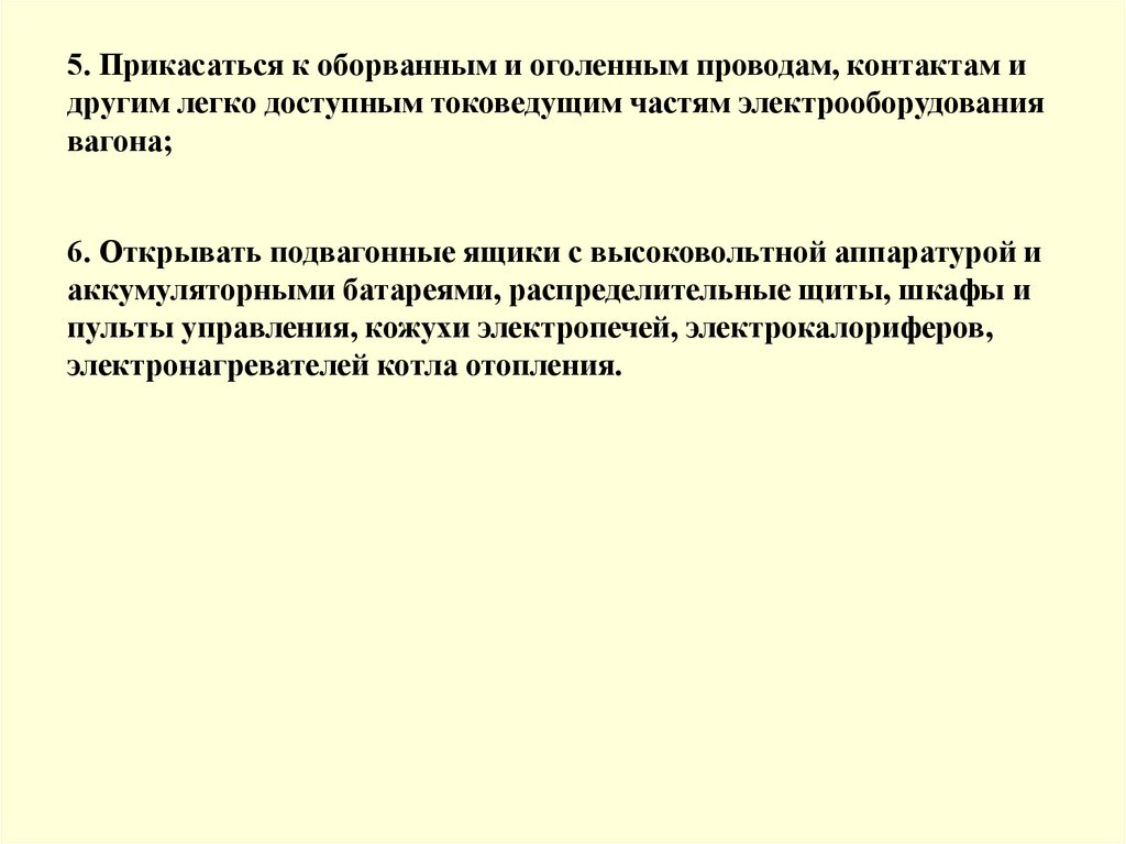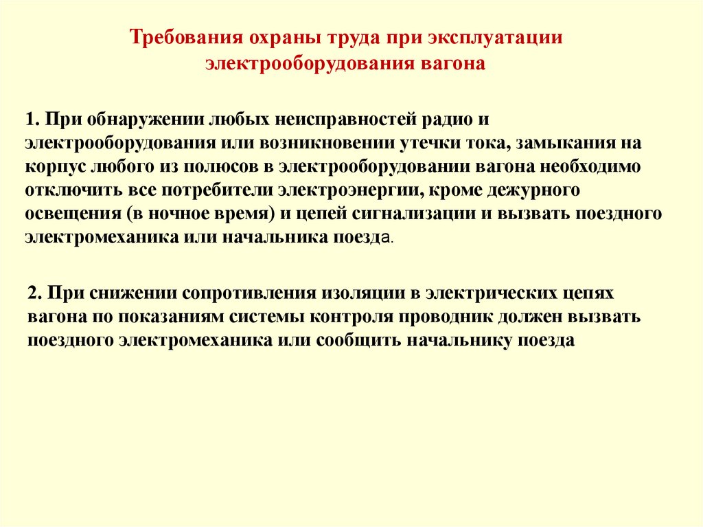 Требования охраны труда при эксплуатацииэлектрооборудования вагона