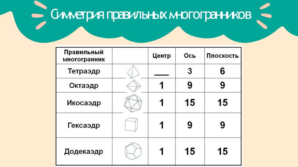 Симметрия правильныхмногогранников Элементы