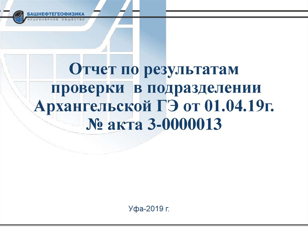Отчет по результатам проверки в подразделении Архангельской ГЭ от 01.04.19г. № акта 3-0000013