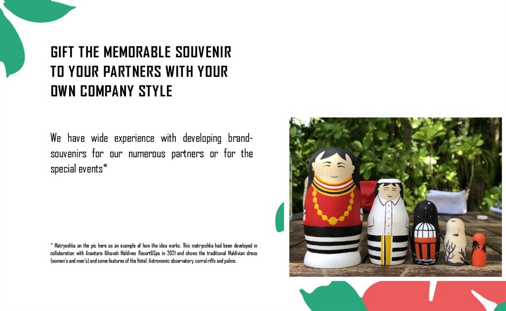 GIFT THE MEMORABLE SOUVENIRTO YOUR PARTNERS WITH YOUR
