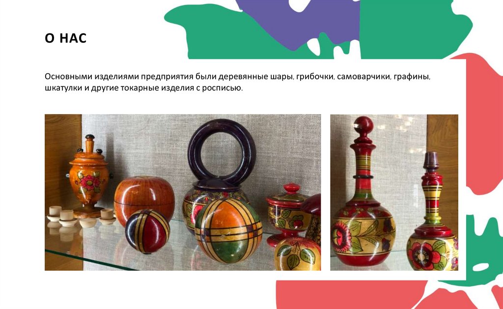 О НАСОсновными изделиями предприятия были деревянные шары, грибочки, самоварчики, графины,