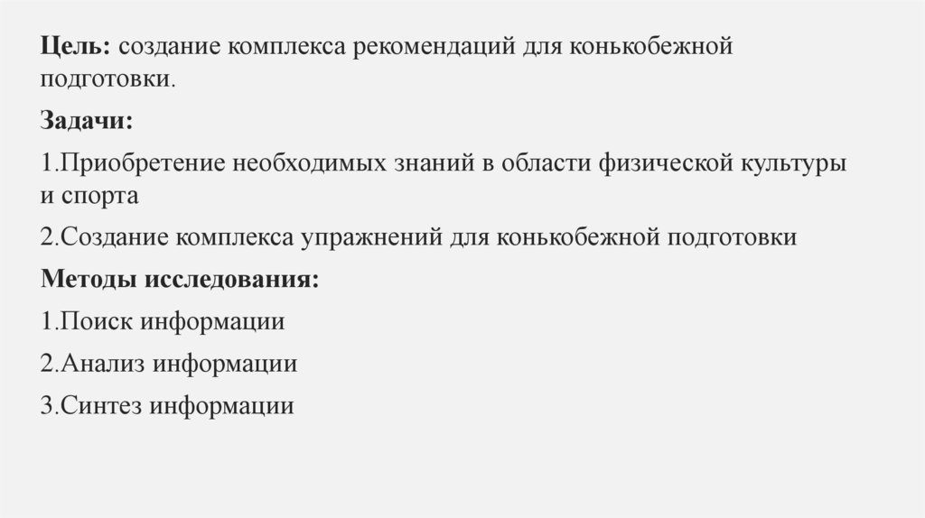 Цель: создание комплекса рекомендаций для конькобежнойподготовки.