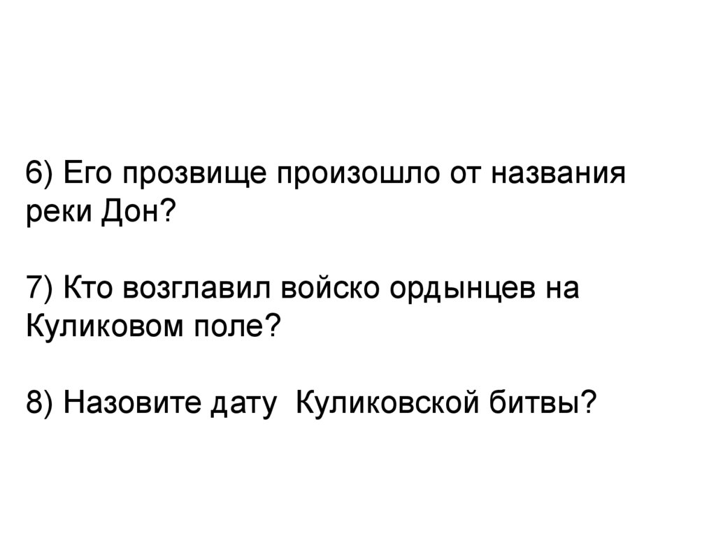 6) Его прозвище произошло от названияреки Дон?