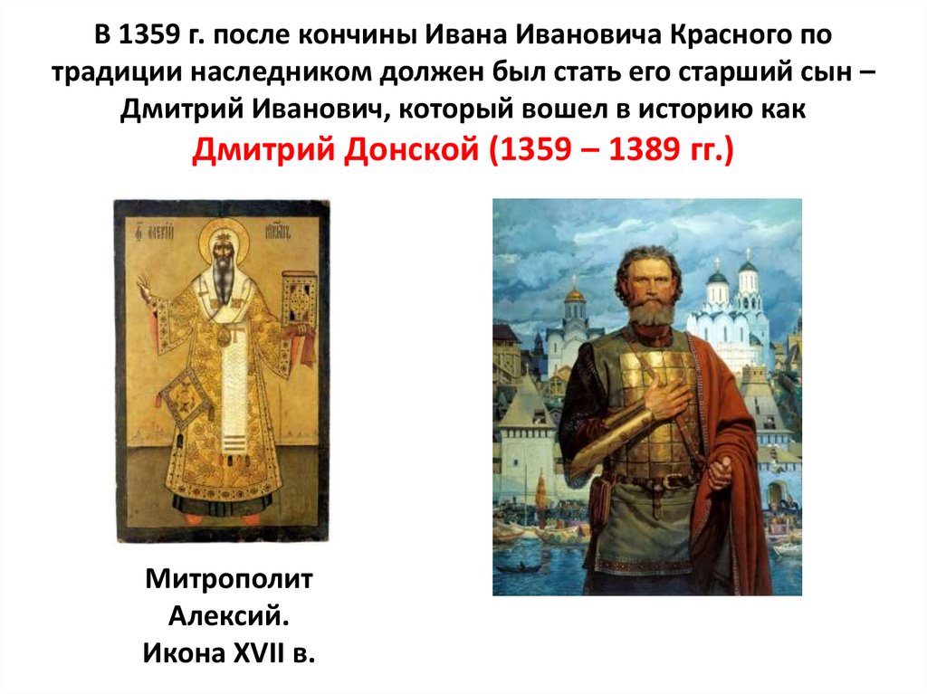 В 1359 г. после кончины Ивана Ивановича Красного потрадиции наследником должен был стать его старший сын –